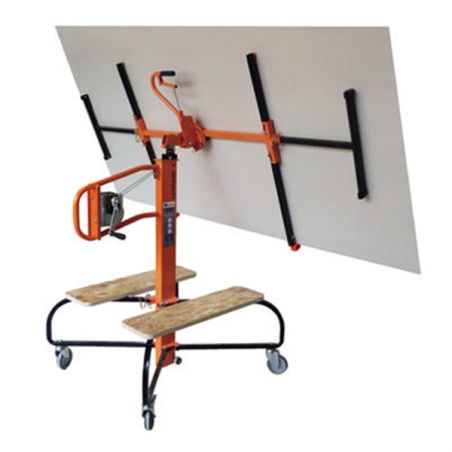 Le lève plaque ROGER MONDELIN permet un excellent maintien et une bonne protection de la plaque de platre quelle que soit sa dimension. Son transport est facile en 3 éléments et il est conforme à la norme et à l'article L233-5 du code du travail.