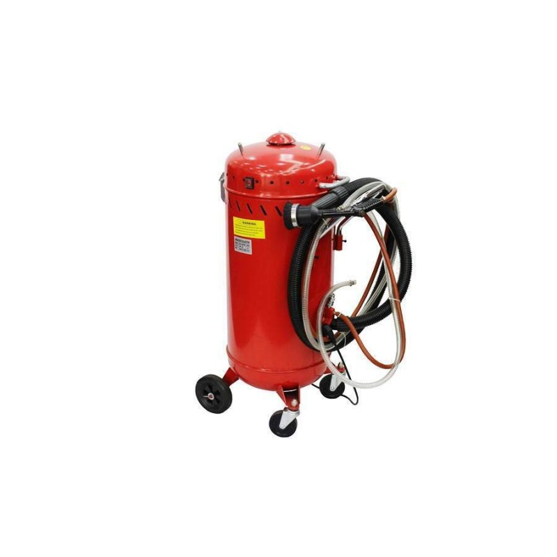 Faible d'encombrement et muni de roues, vous pourrez facilement la déplacer. Afin que vous puissiez directement vous mettre au travail, elle vous sera également livrée avec les tuyaux d'aspiration et un pistolet de projection et un filtre permettant de séparer les débris de l'abrasif. Nous vous recommandons l'utilisation de Corindon ou granulat de verre avec une granulométrie de 0.24 à 0.45mm pour un travail parfait et fluide. Vous ne devez pas utiliser de sable conventionnel de construction. Bien trop humide, gros, irrégulier, pollué, il bouchera votre sableuse à coup sûr! L'effet venturi en créant une dépression permanente permet la récupération de l'abrasif et une grande partie de la poussière pour ré-utilisation. Les débris plus gros sont séparés de l'abrasif.